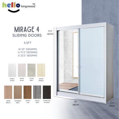 [Kingswood]幻影4推拉门衣柜,4|4.5|5|5.5|6英尺,实心胶合板,包括12个月保修,有9种颜色可供选择